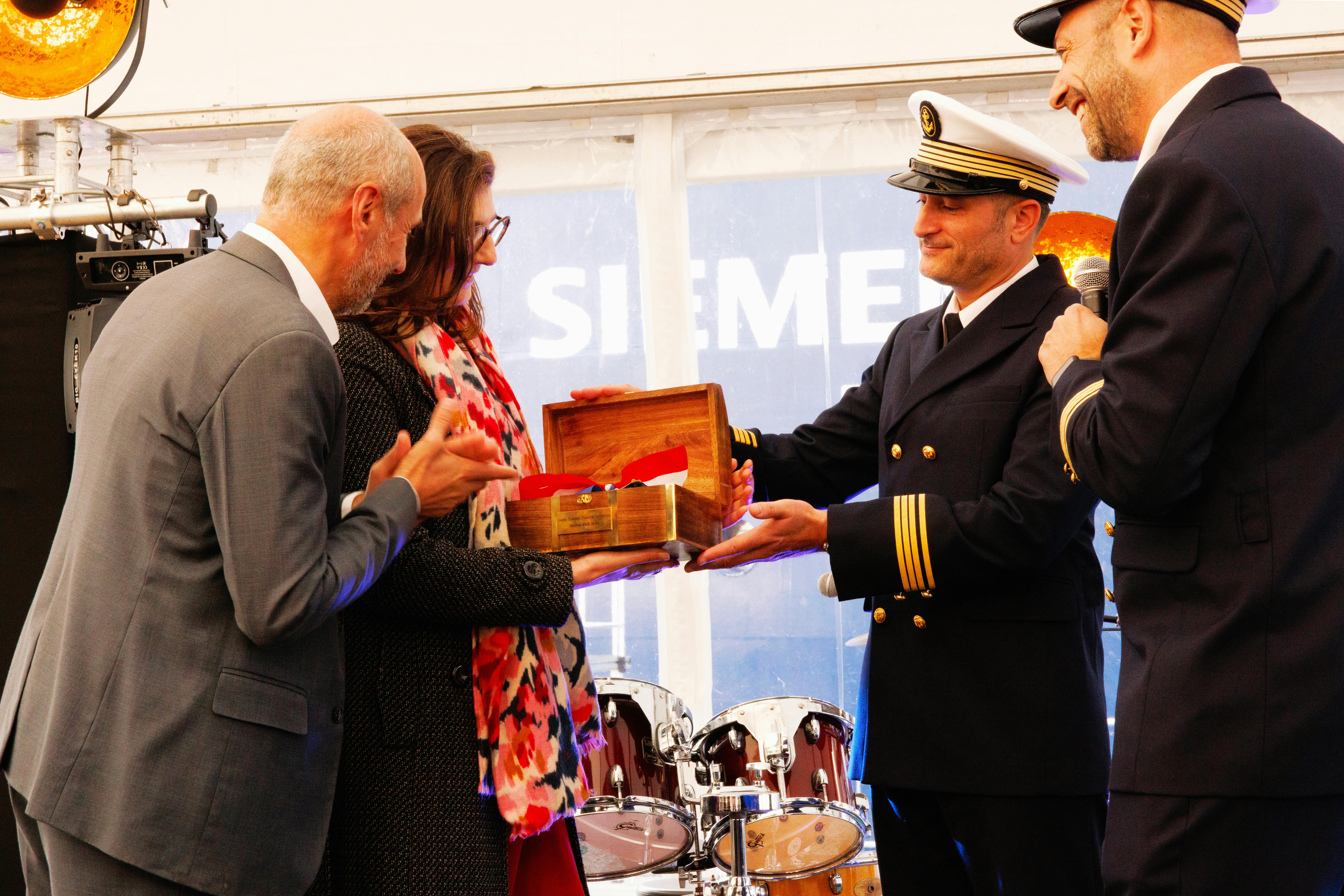 On Friday, October 25, we celebrated the naming ceremony of Service Operation Vessel (SOV) C416, Goelo Enabler, in the port city of Saint-Malo, France. The Lady Sponsor of the vessel is Ms. Isabelle Juillet, General Manager & Finance Director of Siemens Energy, France.